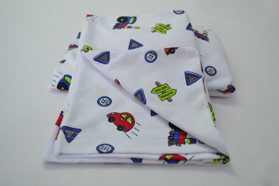– 01 Fronha de Malha 100% algodão, Fio 30/1 Penteado, com malha estampada (frente) e (verso)